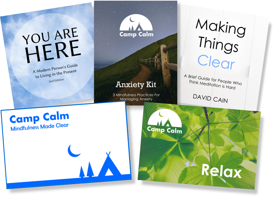 You Are Here and Making Things Clear both come in PDF, Kindle, and epub formats. The Camp Calm Anxiety Kit is a short booklet in PDF format only.
